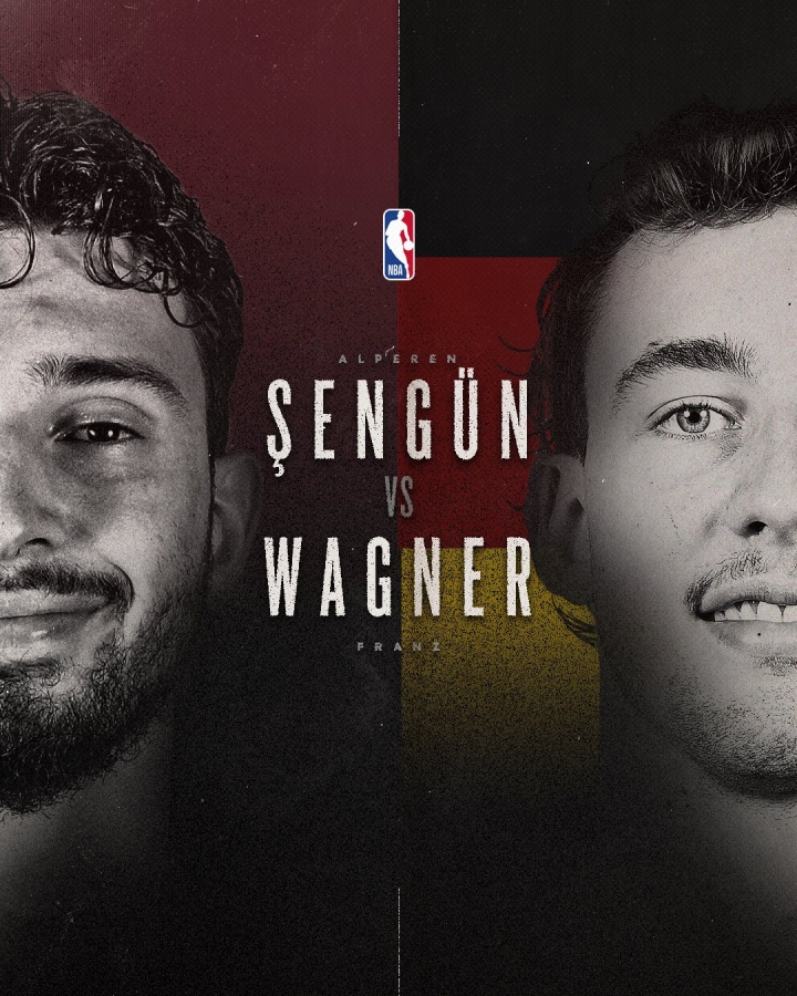 在賽前預熱時(shí),NBA給出的海報上是兩隊的箭頭人物——申京和小瓦格納;