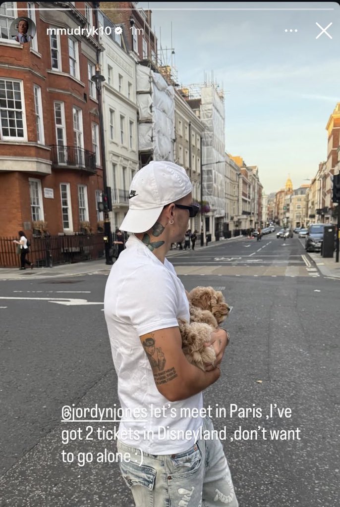 穆德里克還在個(gè)人社媒ins story艾特喬丁-瓊斯:“讓我們在巴黎相見(jiàn)吧,我有兩張迪士尼的票,不想一個(gè)人去?!敝竽碌吕锟藙h除了這條消息。