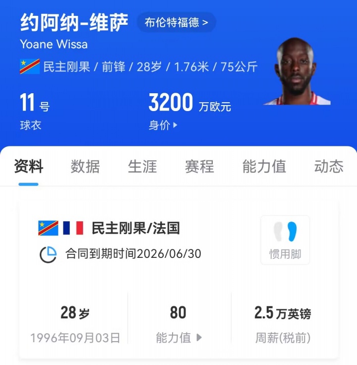 28歲的維薩目前的德轉身價(jià)為3200萬(wàn)歐元,他與布倫特福德的合同將于明年到期。