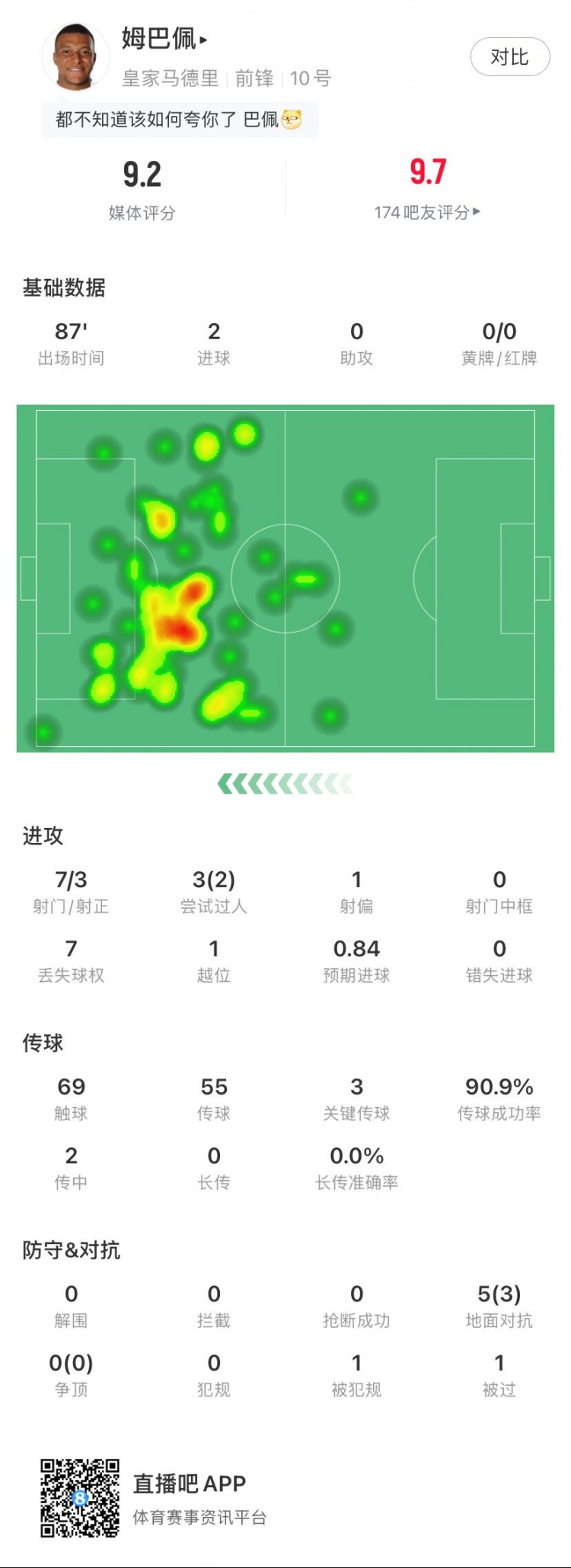 8月25日訊 西甲聯(lián)賽第2輪,皇馬客場(chǎng)對陣皇家?jiàn)W維耶多。本場(chǎng)比賽皇馬球員姆巴佩上演梅開(kāi)二度,以下為他在本場(chǎng)數據: