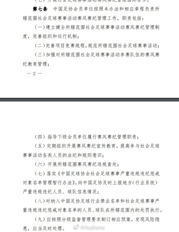 當然了,但凡對中國足協(xié)職責有點(diǎn)了解,懂點(diǎn)新體育法的,或者看過(guò)這個(gè)文件的,都不至于想出個(gè)這么搞笑的聯(lián)系。因為這個(gè)文件出臺背景是蘇超誕生之前的事情,里面甚至白紙黑字規定了分好了中國足協(xié)和地方足協(xié)、社會(huì )辦賽方的權利義務(wù),甚至規定地方賽事主辦者才是賽風(fēng)賽紀第一責任人,廣大球迷深?lèi)和唇^的賽風(fēng)賽紀問(wèn)題現在捋順了明確的職責分工,反而對蘇超這類(lèi)社會(huì )賽事來(lái)說(shuō)是個(gè)大大的好事。