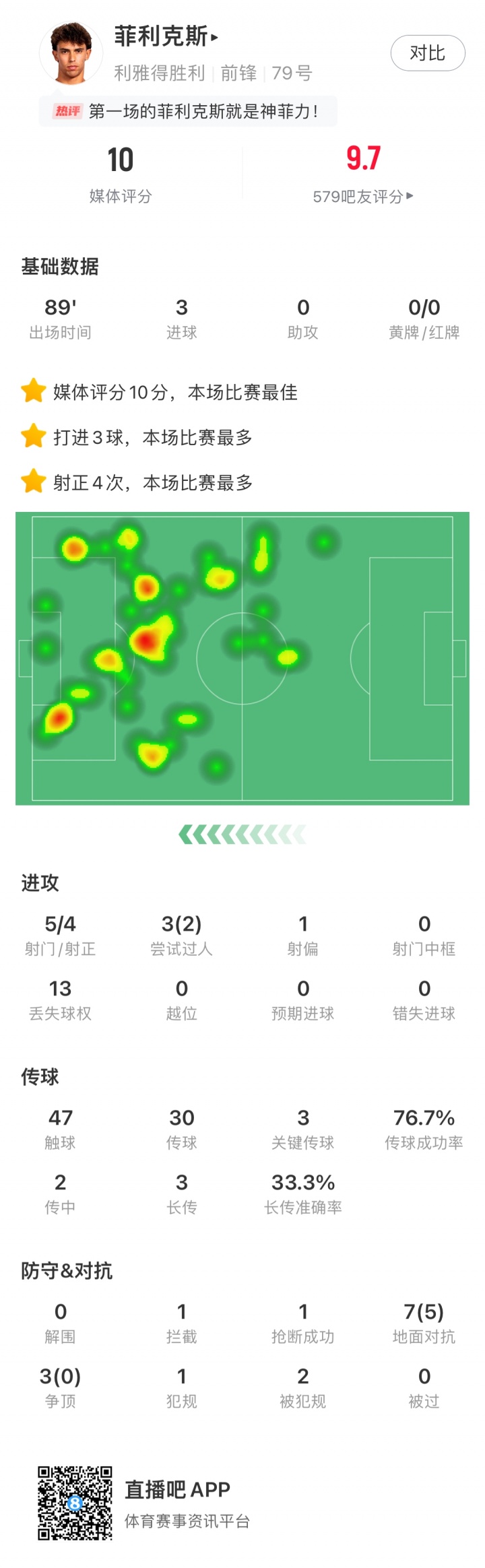 08月30日訊 菲利克斯迎來(lái)沙特聯(lián)首秀,5次射門(mén)4次射正上演帽子戲法,貢獻3次關(guān)鍵傳球,幫助利雅得勝利5-0客勝布賴(lài)代合作。
