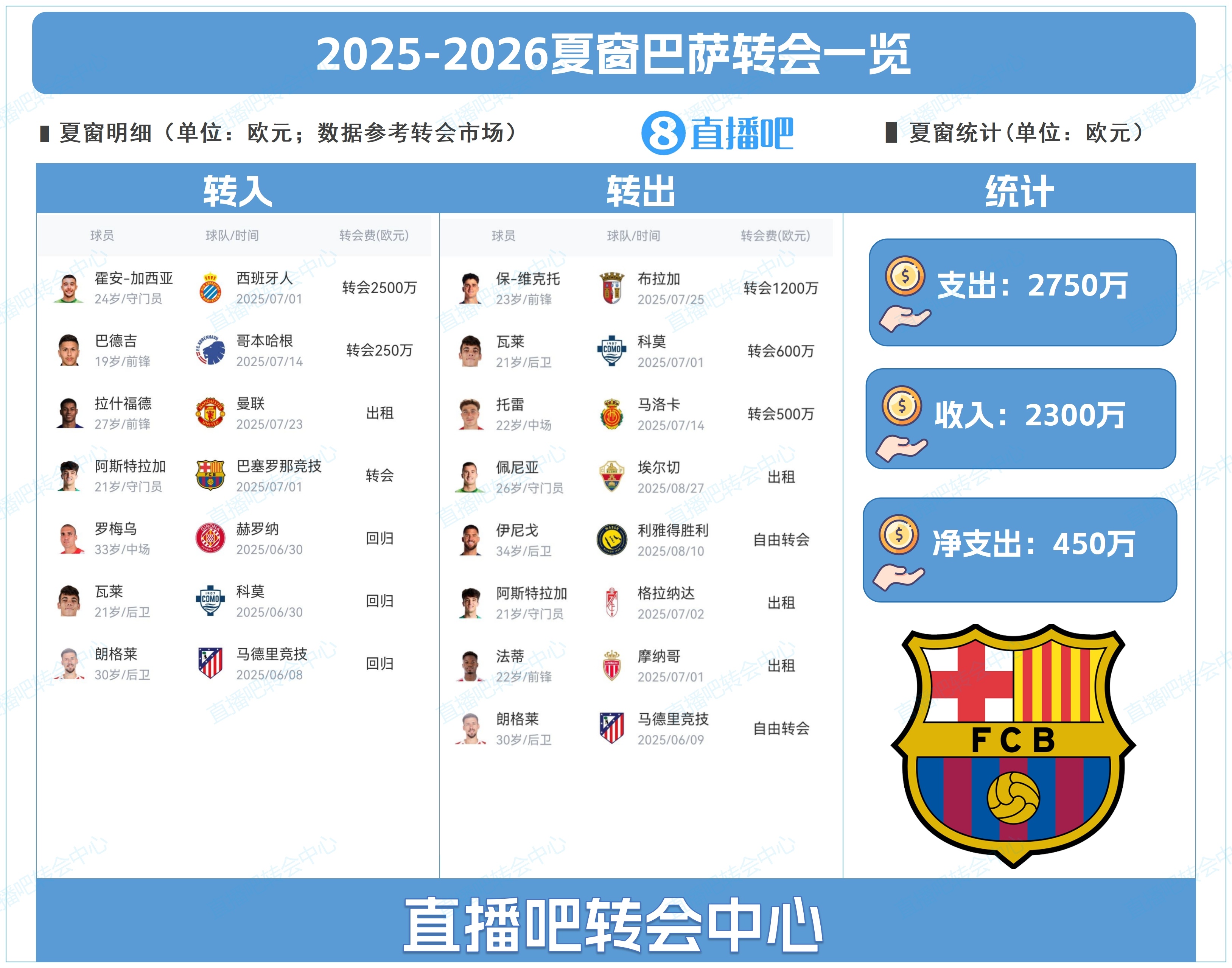 為吧友們總結了巴塞羅那今夏的轉會(huì )操作,吧友們能打幾分?