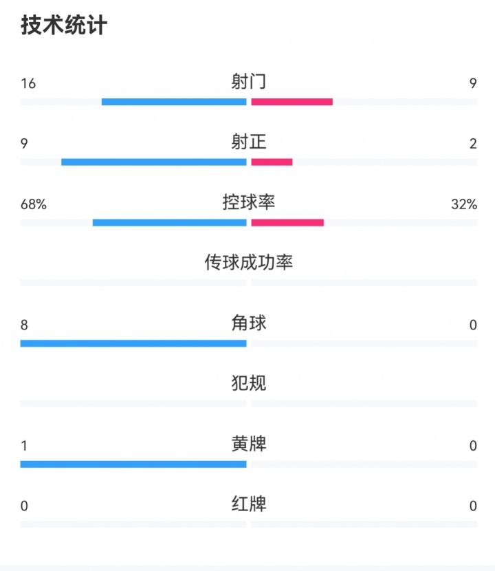 U22國足2-1險勝東帝汶,U22國足vs東帝汶全場(chǎng)數據,射門(mén)16-9,射正9-2,U22國足控球率接近7成。