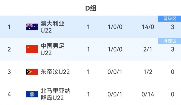 09月03日訊 U23亞洲杯預選賽D組第一輪結束,U22國足2-1險勝東帝汶,暫排名小組第2。