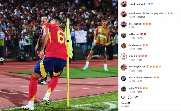 9月5日訊 西班牙在世預賽客場(chǎng)3-0完勝保加利亞,梅里諾接亞馬爾角球助攻后頭槌破門(mén)。
