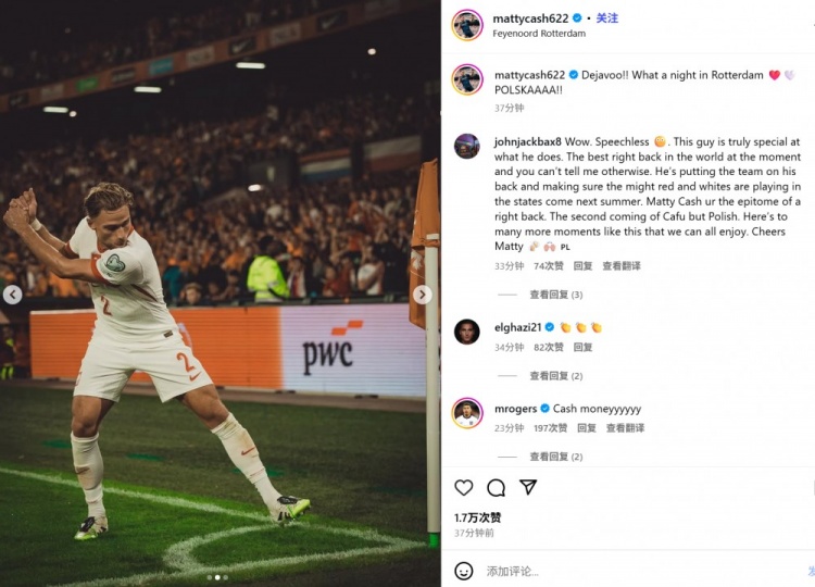他也在賽后通過(guò)社媒曬出自己的高爾夫揮桿慶祝照,并配文:“似曾相識!鹿特丹之夜晚真是棒極了????波蘭隊!”