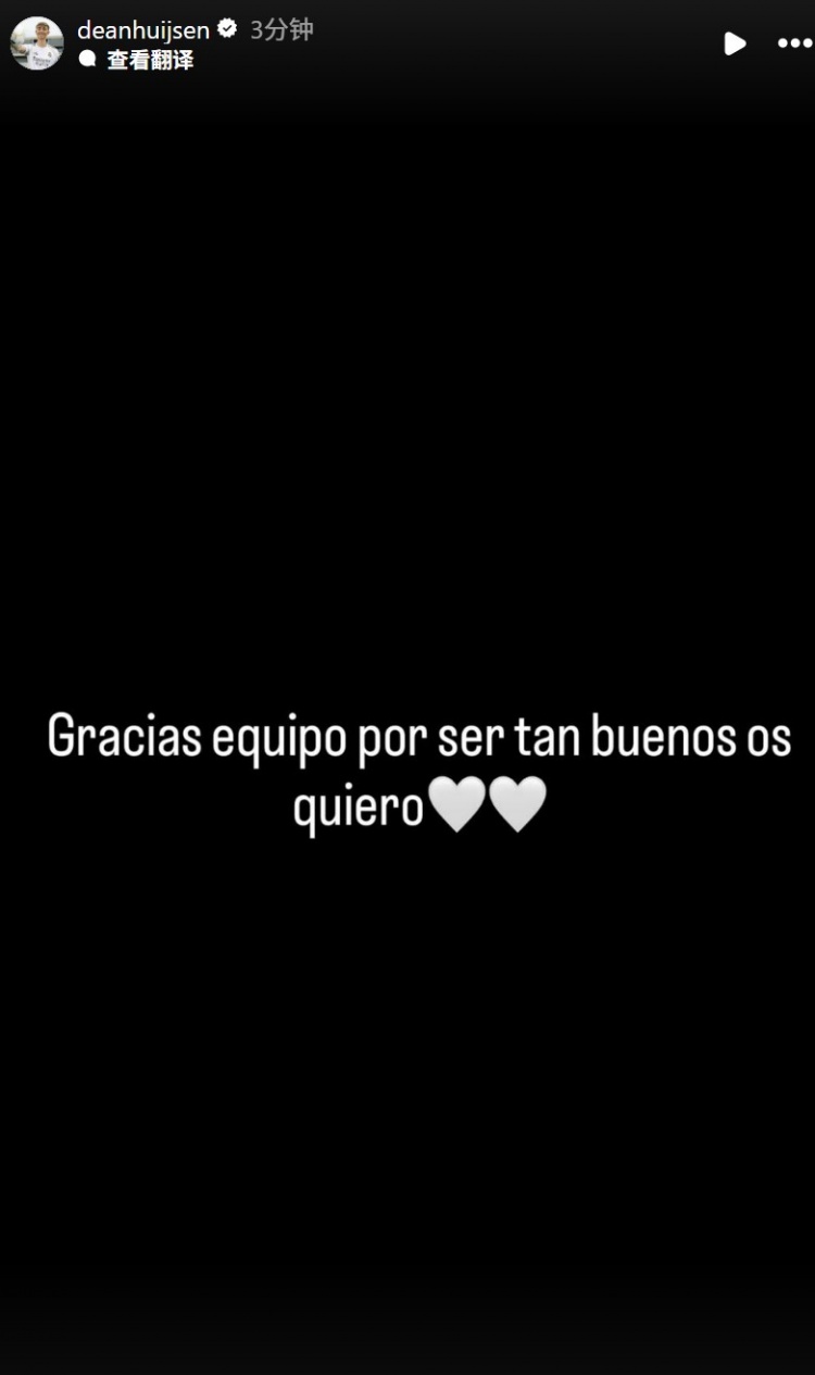 本場(chǎng)比賽赫伊森領(lǐng)到一張有爭議的紅牌,賽后球員在社媒發(fā)文寫(xiě)道:“感謝這支球隊如此出色,我愛(ài)你們?!?/p>