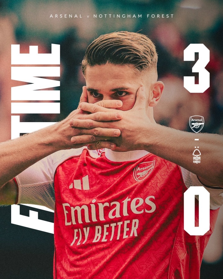 09月14日訊 英超第4輪阿森納3-0擊敗諾丁漢森林,取得9月開(kāi)門(mén)紅。