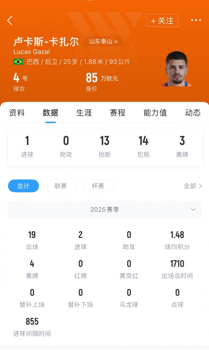 感謝卡扎爾為山東泰山做出的貢獻。自2025年1月加盟以來(lái),卡扎爾在隊期間兢兢業(yè)業(yè),共代表山東泰山出場(chǎng)19次,打入2粒進(jìn)球。在防守端,卡扎爾盡職盡責,出色地履行了后衛的本職工作;在進(jìn)攻端,他也極具威脅,尤其是在本賽季客場(chǎng)對陣梅州客家的比賽里,卡扎爾在下半場(chǎng)補時(shí)階段頭球絕殺,幫助球隊完成了大逆轉。