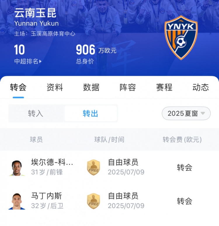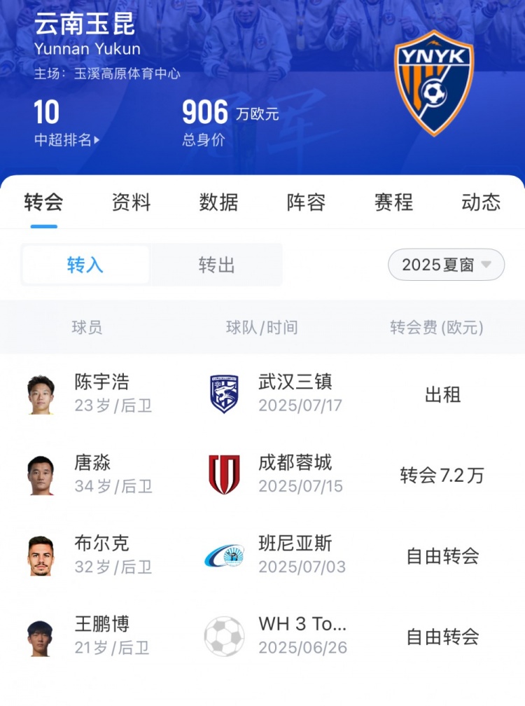 7月22日訊 2025年中超夏窗關(guān)閉,升班馬云南玉昆方面,球隊免簽羅馬尼亞中衛布爾克,同時(shí)引進(jìn)蓉城球員唐淼。