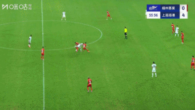 比賽第56分鐘,徐新被斷球倒地控訴,裁判表示沒(méi)有犯規。恩戈姆橫傳,鐘浩然抽射破門(mén),梅州1-4海港!
