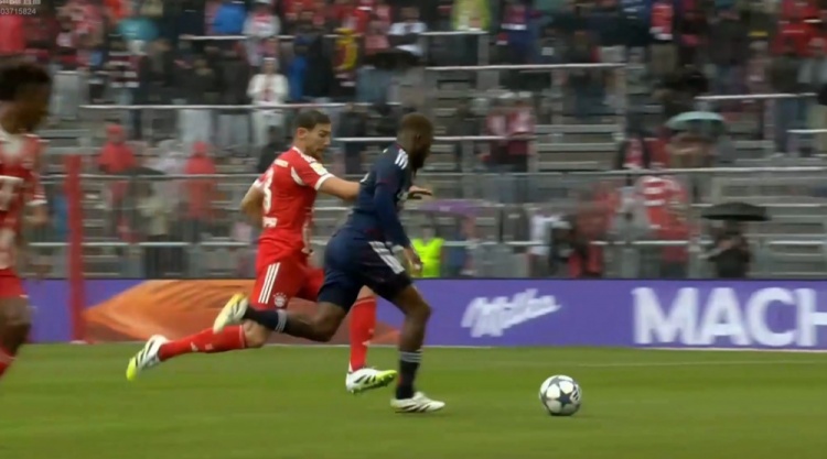 第37分鐘,拜仁的任意球長(cháng)傳被門(mén)將德尚沒(méi)收?!?/p>