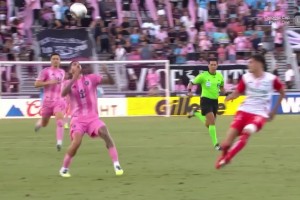 下半場(chǎng)補時(shí)6分鐘,第95分鐘,邁阿密左路角球開(kāi)到禁區第一點(diǎn)被頂出,弧頂阿爾巴遠射被門(mén)將神勇?lián)涑??!?/p>