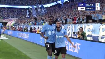 第31分鐘,呂焯毅禁區角附近送出一記絕妙弧線(xiàn),皮球繞過(guò)后衛,拉布亞德鏟射破門(mén)!大連英博1-0領(lǐng)先青島海?!?/strong>
