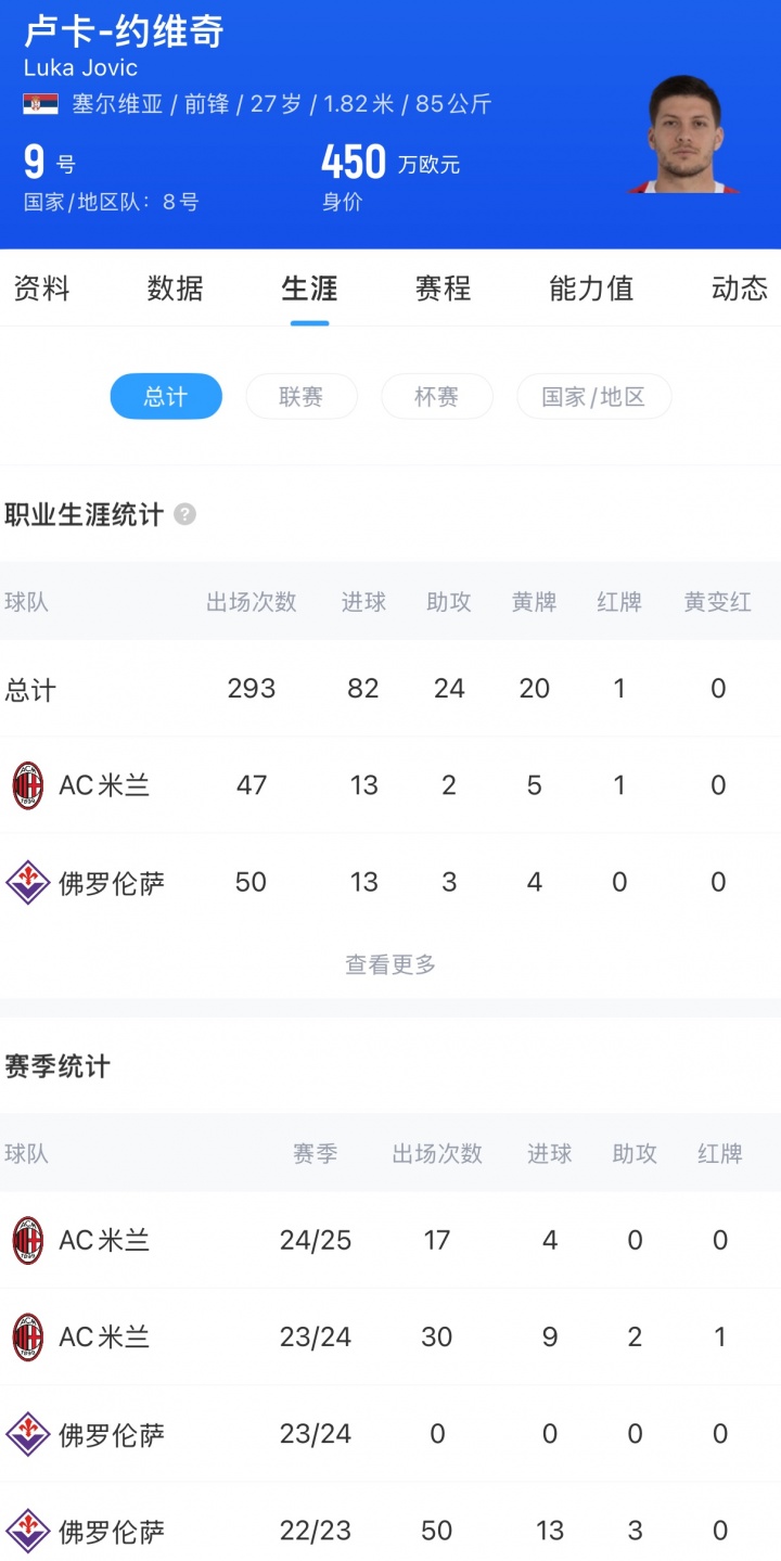 2023年夏窗,米蘭花費50萬(wàn)歐元的轉會(huì )費,從佛羅倫薩簽下約維奇。27歲的約維奇本賽季為米蘭出場(chǎng)17次打進(jìn)4球。球員德轉身價(jià)僅為450萬(wàn)歐,他巔峰時(shí)曾達到過(guò)6000萬(wàn)歐。