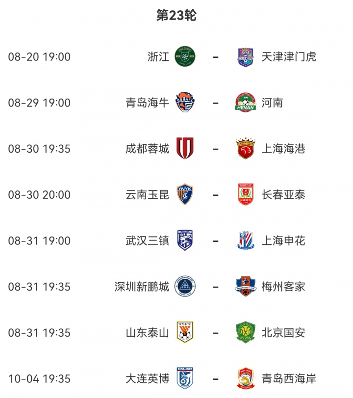 而另一場(chǎng)比賽,原定于8月30日進(jìn)行的大連英博主場(chǎng)對青島西海岸的比賽,被改期至10月4日進(jìn)行。