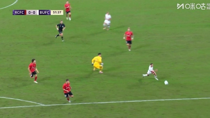 比賽第51分鐘,劉殿座出擊失誤未能解圍,曼谷聯(lián)球員左路小角度面對空門(mén)打丟。