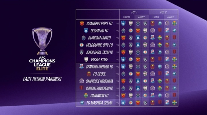 其中海港、申花、蓉城三支中超球隊將在聯(lián)賽階段遭遇相同的8個(gè)對手,上海雙雄的主客場(chǎng)分布也完全一致。