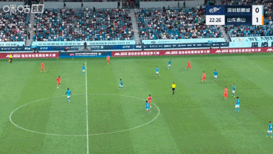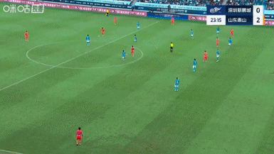 比賽第23分鐘,謝文能精準傳中,卡扎伊什維利頭球破門(mén),場(chǎng)上比分深圳新鵬城0-2山東泰山。