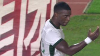 易邊再戰,第47分鐘,青島西海岸打出配合,阿齊茲左路得球突入禁區,起腳爆射打偏了?!?/p>