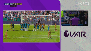 08月17日訊 英超第1輪,切爾西vs水晶宮,比賽第13分鐘,埃澤直接任意球爆桿破門(mén)!VAR介入,裁判現場(chǎng)向觀(guān)眾宣判:經(jīng)VAR復核確認,水晶宮6號球員(格伊)在射門(mén)瞬間距離人墻不足一米,因此,此球進(jìn)球無(wú)效,判罰間接任意球。