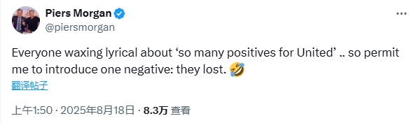 摩根:“大家都在大談特談‘曼聯(lián)有很多積極的地方’......那就讓我說(shuō)個(gè)消極的點(diǎn)——他們輸了???!?/p>