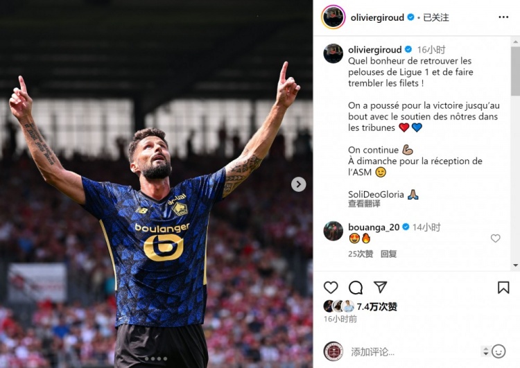 吉魯社媒曬出比賽照片,并寫(xiě)道:“能夠重返法甲賽場(chǎng)并進(jìn)球,真是太開(kāi)心了!在看臺上球迷們的支持下,我們?yōu)閯倮床阶詈笠豢??!?/p>