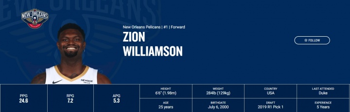 根據NBA官網(wǎng)數據,上賽季錫安的注冊體重為284磅(129千克)。經(jīng)過(guò)休賽期的努力,錫安減掉了接近20斤。