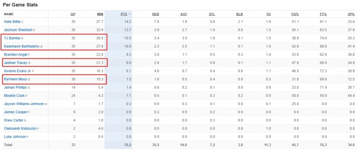 俄勒岡大學(xué)上賽季出場(chǎng)時(shí)間前5的后衛里,有4人今夏離隊。球隊官網(wǎng)目前的名單上共有16人(不包括林葳),有5人擔任后衛,3人上賽季效力于俄勒岡??梢源_定一個(gè)首發(fā)位置的是Jackson Shelstad,他大二賽季首發(fā)了全部35場(chǎng)比賽,場(chǎng)均13.7分2.9籃板2.7助攻,入選大十聯(lián)盟三陣。而Drew Carter和Jamari Phillips過(guò)去是邊緣球員,前者兩個(gè)賽季共出戰13場(chǎng)比賽場(chǎng)均2.2分鐘;后者大一賽季共出戰14場(chǎng)比賽場(chǎng)均5.4分鐘。