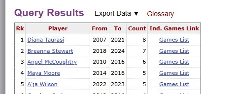 根據數據統計,這是威爾遜季后賽生涯第6個(gè)30+,她的季后賽30+場(chǎng)次排在WNBA歷史第3,只有陶樂(lè )西(8次)和斯圖爾特(7次)比她更多。
