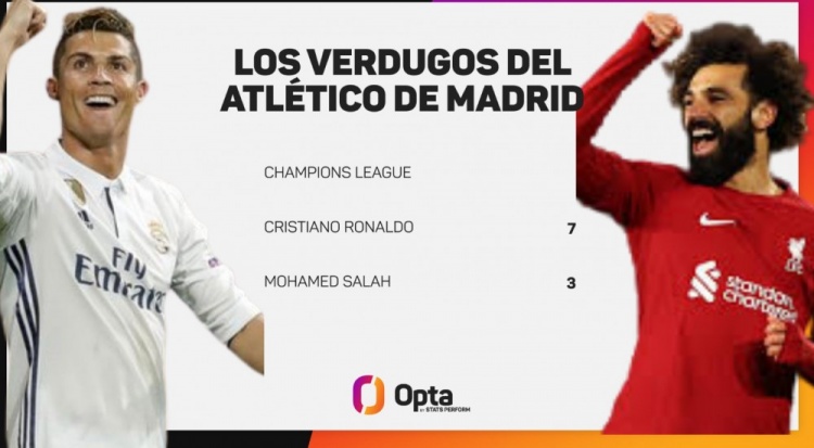 在歐冠賽場(chǎng)上,薩拉赫7次面對馬競打進(jìn)3球。在這項賽事中,薩拉赫面對床單軍團的進(jìn)球數量?jì)H次于C羅(12場(chǎng)7球)。