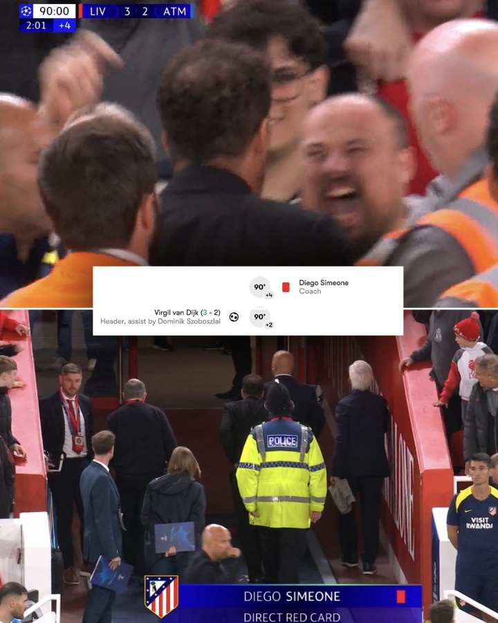 遭絕殺后染紅??西蒙尼:被罵90分鐘,我行為不合理但我也是人
