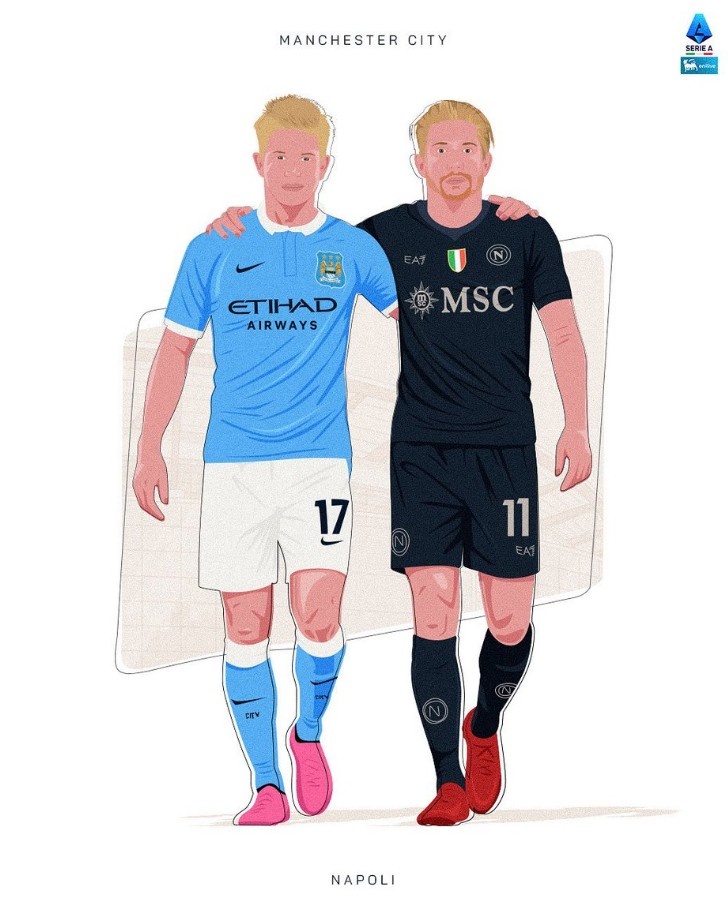 意甲官推也曬出海報為本場(chǎng)比賽預熱,海報中是分別身披曼城球衣以及那不勒斯球衣的德布勞內,配文寫(xiě)道:“過(guò)去和現在!”
