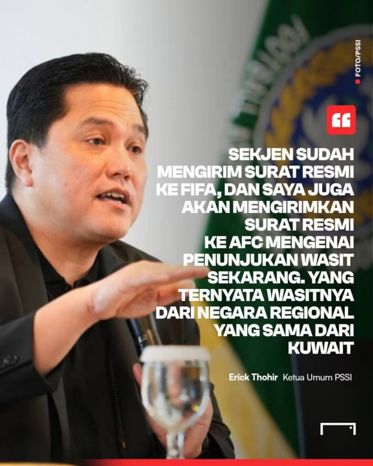 托希爾表示,印尼足協(xié)已就安排科威特裁判吹罰世預賽一事向國際足聯(lián)和亞足聯(lián)正式提交了抗議信。