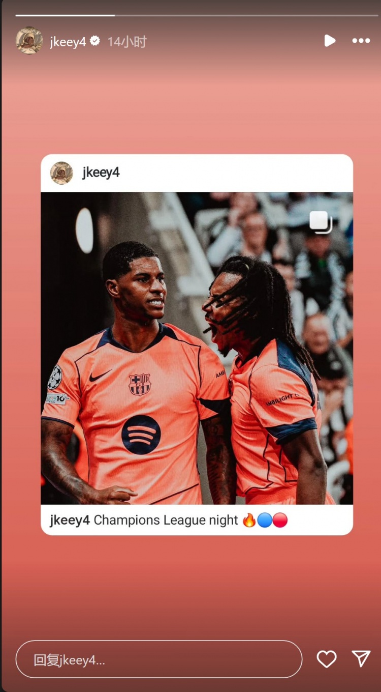 此役拉什福德梅開(kāi)二度,為他送出一記助攻的孔德更新社媒動(dòng)態(tài),曬出自己與拉什福德的賽場(chǎng)合照,配文:“歐冠之夜?!?/p>
