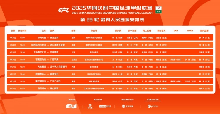 9月20日訊 中甲聯(lián)賽官方公布聯(lián)賽第23輪裁判選派,唐順齊將擔任重慶銅梁龍VS廣東廣州豹的VAR裁判。