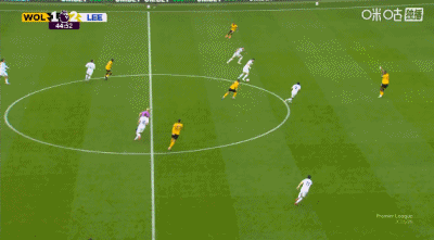 狼隊vs利茲聯(lián)比賽第45分鐘,奧卡福推遠角破門(mén),利茲聯(lián)3-1領(lǐng)先狼隊。