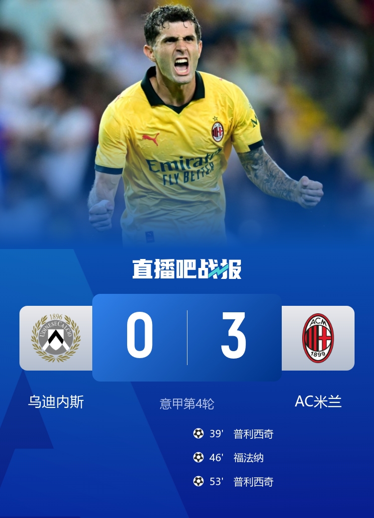 9月21日訊 意甲第4輪,烏迪內斯坐鎮主場(chǎng)弗里烏利體育場(chǎng)迎戰AC米蘭。上半場(chǎng),普利西奇先拔頭籌,希門(mén)尼斯失單刀。易邊再戰,福法納破門(mén),普利西奇雙響。最終烏迪內斯0-3米蘭。積分榜方面烏迪內斯7分第五,米蘭9分暫第三。