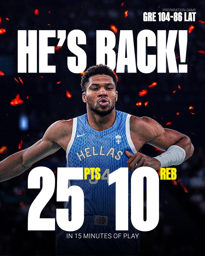 8月22日訊 在此前的男籃歐錦賽熱身賽中,希臘男籃104-86擊敗拉脫維亞男籃,字母哥迎來(lái)熱身賽的首秀。
