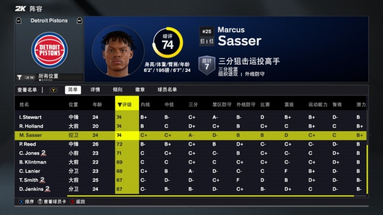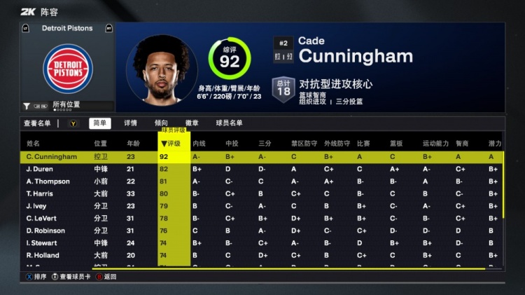 8月30日訊 NBA2K26各隊球員能力值出爐,其中活塞隊球員詳情如下: