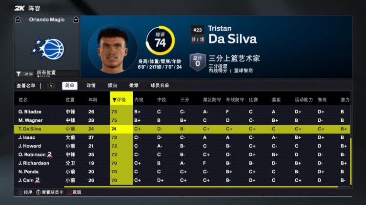 8月30日訊 今日NBA 2K26正式發(fā)布,魔術(shù)隊球員能力值如下: