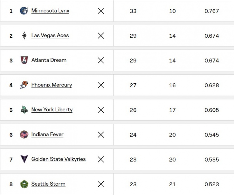 如此一來(lái),本賽季W(wǎng)NBA季后賽8強全部出爐,分別是山貓、王牌、夢(mèng)想、水星、自由人、狂熱、女武神和風(fēng)暴。