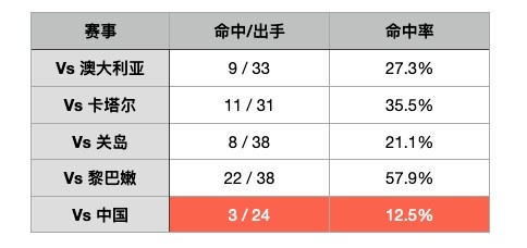 而“三分準”這件事,在小組賽階段救過(guò)我們便秘的進(jìn)攻無(wú)數次,掩蓋了我們其他進(jìn)攻方式乏力的問(wèn)題。