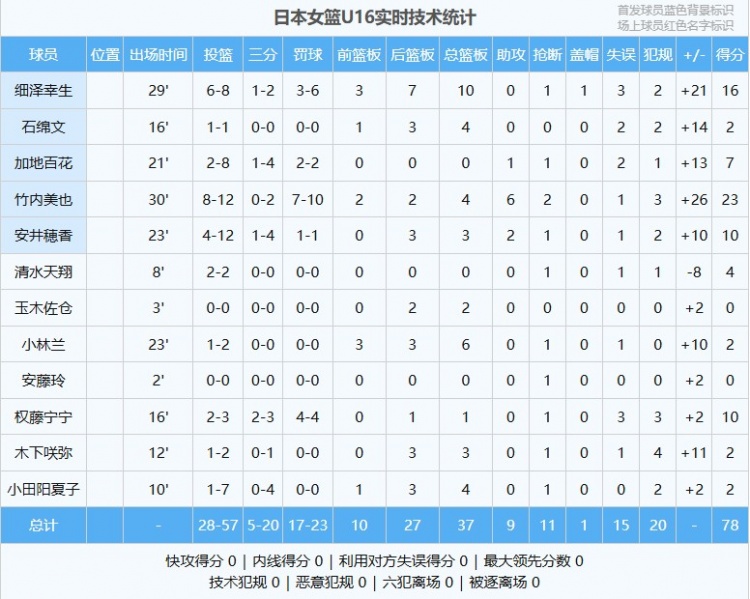整場(chǎng)比賽,雙方的整體投籃命中率有著(zhù)較大的差距,其中,中國U16女籃全隊62投僅18中,命中率為29%;而日本U16女籃全隊57投28中,命中率為49.1%。