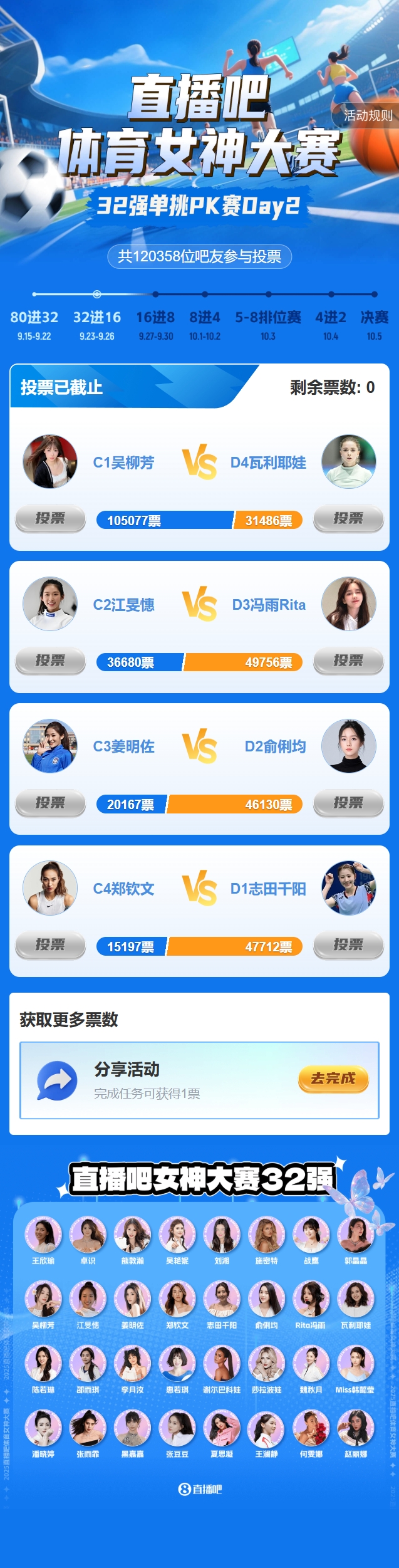 2025年『體育女神大賽』昨日進(jìn)入32強單挑PK賽階段,Day2(C組、D組)的結果如下: