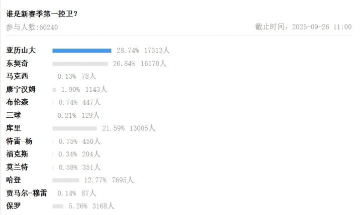 『吧友評選』??NBA新賽季第一控衛:謝伊-亞歷山大!