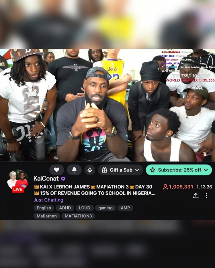 據美國媒體Complex報道,詹姆斯的亮相為這場(chǎng)直播帶來(lái)了巨大關(guān)注度,直播高峰觀(guān)看人數超過(guò)了100萬(wàn)人。Kai Cenat由此實(shí)現了直播生涯首次100萬(wàn)在線(xiàn)觀(guān)看人數,打破了此前最高約72萬(wàn)觀(guān)眾人數的紀錄。