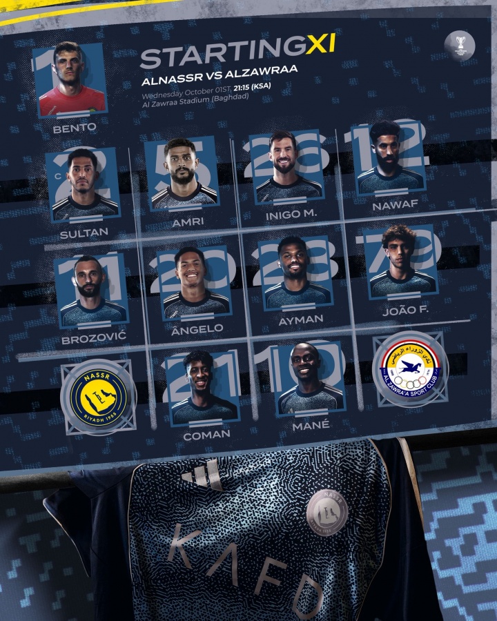 10月2日訊 北京時(shí)間凌晨2點(diǎn)15分,亞冠二級小組賽D組第2輪,利雅得勝利客場(chǎng)對陣伊拉克球隊扎瓦拉體育,賽前利雅得勝利公布了首發(fā)陣容,C羅迎來(lái)輪休,菲利克斯、科曼先發(fā),馬內出戰。